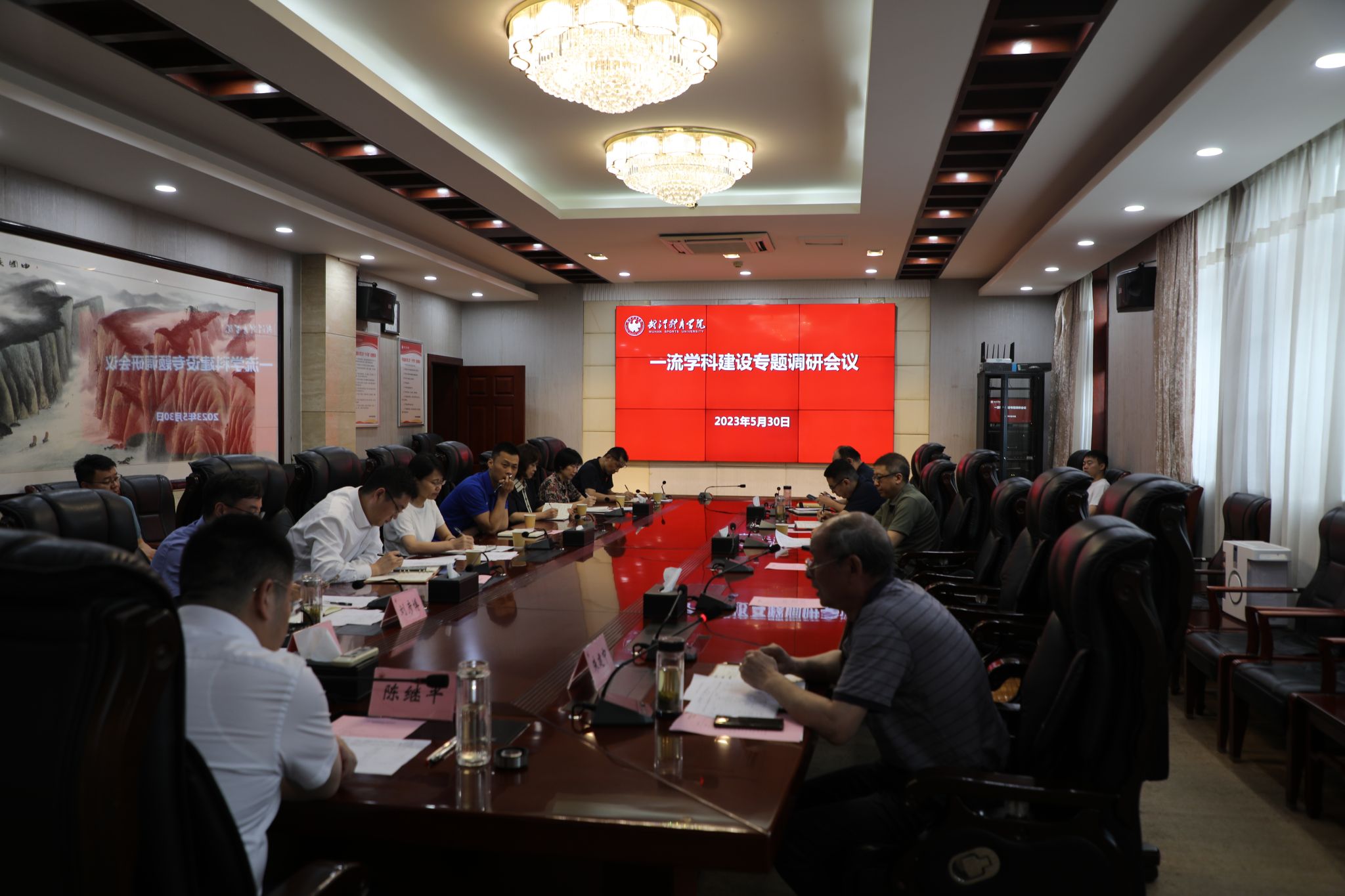 在听取相关职能部门负责人的汇报后,陈继平指出,一流学科建设是学校高质量发展的重要战略举措。一是要注重人才建设。学科带头人是学科建设的灵魂,决定学科建设水平的高低,要引育并举,努力打造一支由高层次人才领衔的师德高尚、素质优良、结构合理的教师队伍;二是注重自然科学。在持续保持体育人文社会科学优势的基础上,加快推进体育学与医学、工程学等自然科学的融合发展,培育新的学科增长点;三是注重国际交流合作。积极鼓励师生“走出去”,开阔国际视野,拓展国际合作;四是注重社会服务。围绕国家战略和湖北区域经济社会发展,在咨政建言上下功夫,提高学科的贡献度和显示度;五是注重把握机遇。要坚持需求导向,主动对标,抢占先机,在打造武体学科品牌特色上下功夫。
