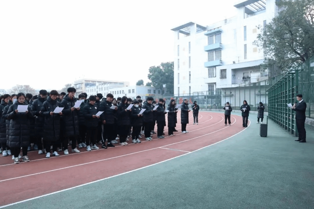 12月4日清晨,我校在西田径场举行了以“大力弘扬宪法精神,建设社会主义法治文化”为主题的升旗仪式,足球学院全体师生参与了本次升旗仪式。迎着朝阳,国旗护卫队踏着坚定的步伐走向升旗台,观礼师生肃立,行注目礼,五星红旗伴随着朝阳与国歌冉冉升起。足球学院2022级本科生李嘉诺作为学生代表发言,他指出,正值武体建校七十周年,作为新时代的武体青年,同学们应该做校训的践行者和“马灯精神”的传承者。奋斗是青春最亮丽的底色,行动是青年最有价值的磨砺,武体学子要有担当,才能不负时间,展现青春底色。仪式在全体师生的合唱《宪法伴我们成长》中结束。